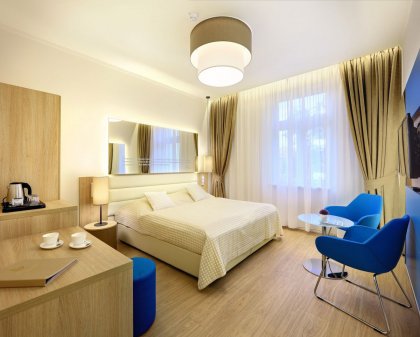 Die Architektin Věra Gabrielová gestaltete die 38 Designerzimmer mit modernen Elementen und schuf damit komfortable und gleichzeitig praktische Gästezimmer.