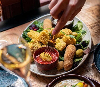 Das preisgekrönte 100% vegane Restaurant Palo Verde befindet sich im Erdgeschoss. Palo Verde serviert Kaffee von lokalen Röstereien und bietet köstliche pflanzliche Gerichte und Snacks während des ganzen Tages an.