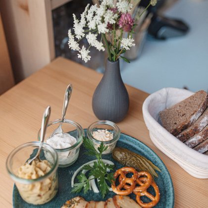 Here you can experience your holiday with all your senses: The smell of the wooden house, ecologically sustainable materials, fresh homemade organic bread rolls in the morning, the sunny and quiet location with a view of the Kleinwalsertal mountain landscape make the Naturzeithof a special place. A visit to the stable with our animals, children in the playground and a cosy open fire in the evening make for wonderful memories for the whole family.