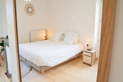 We renovated the house on our own, using organic paints and materials. In harmony with nature, we take care of a permaculture vegetable garden. We are vegetarians and eat organic, and local products. We offer king size organic beds in 100 % vegetal latex whose provide you a big confort. Our bed linen and bath linen are organic. Our cleaning products, are also organic or natural. There are only 2 charming bedrooms, as well as a third one for pilgrims to Saint Jacques de Compostela. A quality and personnalised welcome will be offered to you.