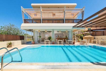 However, our vegan philosophy is not limited only to our vegan restaurant. Holidays are all about relaxing, creating new memories and finding inner balance. Guests can either treat themselves with a Yoga class on our green veranda or, for the extreme sport lovers, visit the Ixia beach where they can enjoy wind or kite surfing under the breath-taking Greek sunset.