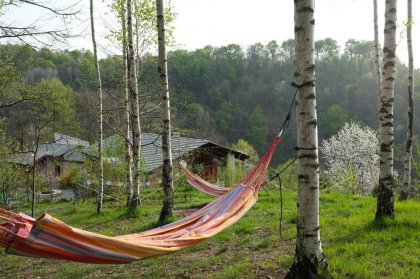 There are many places to be explored alone or in company: the herb garden, the courtyard, the field, the hammocks in the birch wood, the footpath by the stream, the covered terrace.