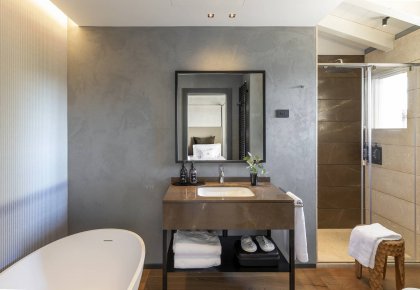 Das Hotel verfügt über sechs einzigartige Suiten, die jeweils mit ihrem eigenen Charakter gestaltet und mit hochwertigen natürlichen Materialien ausgestattet sind: gebürstete Eichenböden, edle Marmorbäder, maßgefertigte Möbel und Bettwäsche, Baumwoll- oder Jutestoffe.