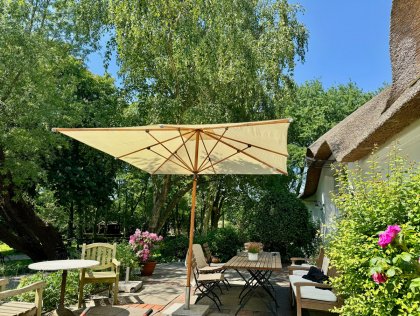 During the restoration of the 250-year-old thatched-roof farmhouse, preserving its original character was a top priority. The furnishings are intentionally kept simple and natural. Each of the spacious rooms and apartments is individually and comfortably furnished, mostly with antique country-style furniture.
