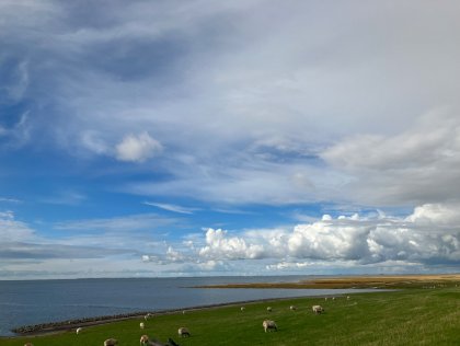The “Haus am Watt” (house at the mudflat) organic hotel is located between Büsum and St. Peter-Ording on a mound along the dike, nestled in a landscape of meadows and fields. The Wadden Sea National Park begins just one kilometer from our doorstep.